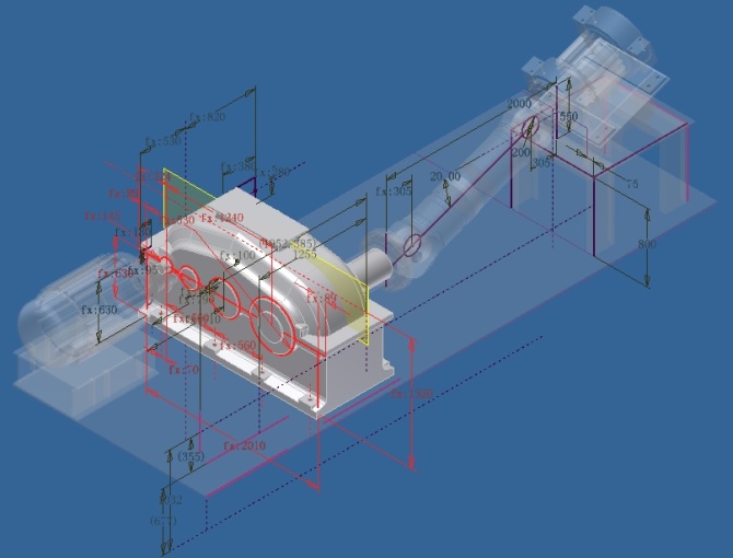 此项目为一个改造项目,将原来的鼓形联轴器改为万向联轴器,因为现在的齿轴需要有20度角的倾斜,非标的(标准的倾斜角是15度)。在此传动系统中本人使用的装配草图来进行约束,还有是EXCLE外部数据的链接。(两天时间完成)平台可能需要加固。
