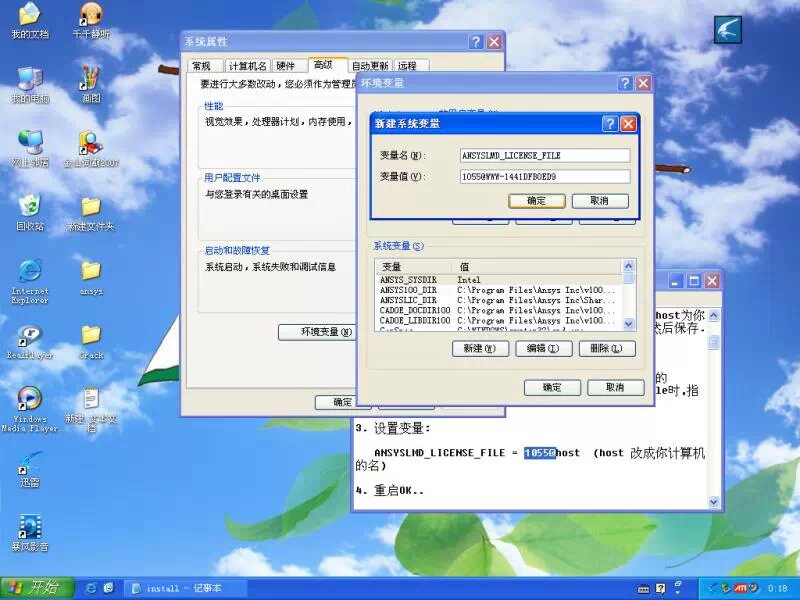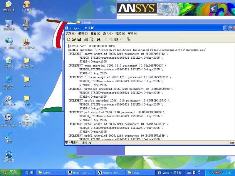 用记事本打开桌面Crack文件中的ansys,将0000000000改成你的计算机名,将1055改成你的网卡号,然后直接保存。