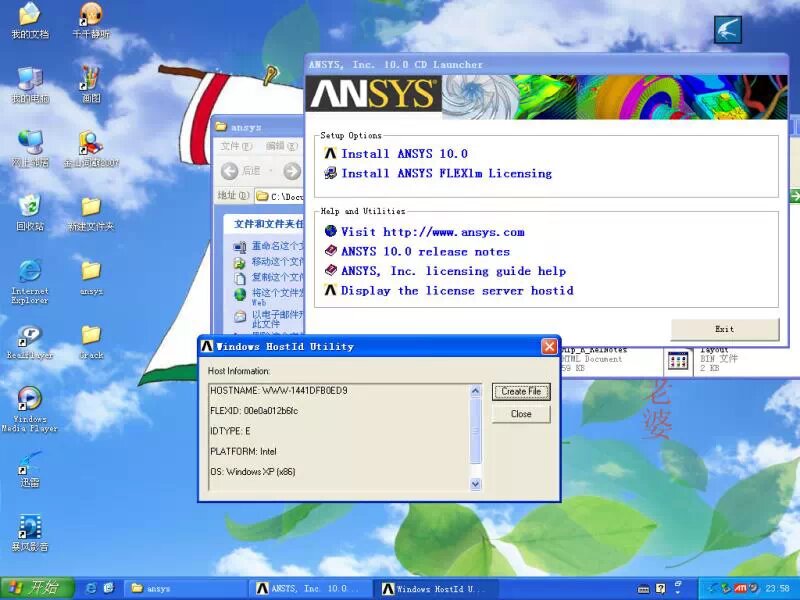 运行ansys文件中的AutoExec,得到ANSYS Inc 10.0 CD Launcher窗口,点击最后一项,可以得到你电脑的计算机名和网卡号