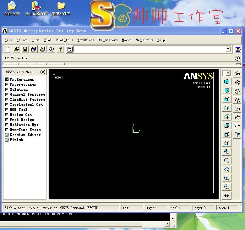 好了,接着我们就来试一试是否安装成功。开始——程序——ansys10.0——ansys.并将其发送到桌面快捷方式,然后双击ansys的快捷方式,稍等一会,就可以看到ansys的窗口。安装成功。