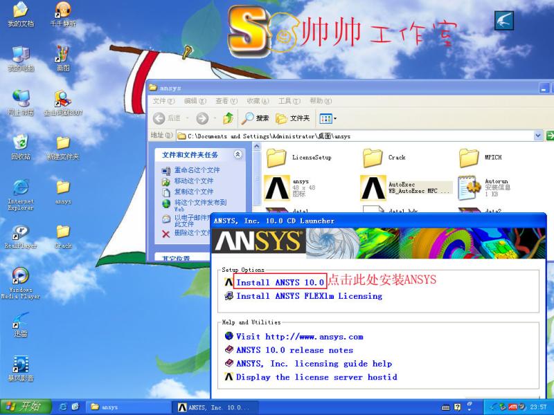 第一步已经顺利完成。然后点击ANSYS Inc 10.0 CD Launcher窗口中的第一项,进行程序的安装。记得安装路径采用默认路径,然后只点NEXT或YES。