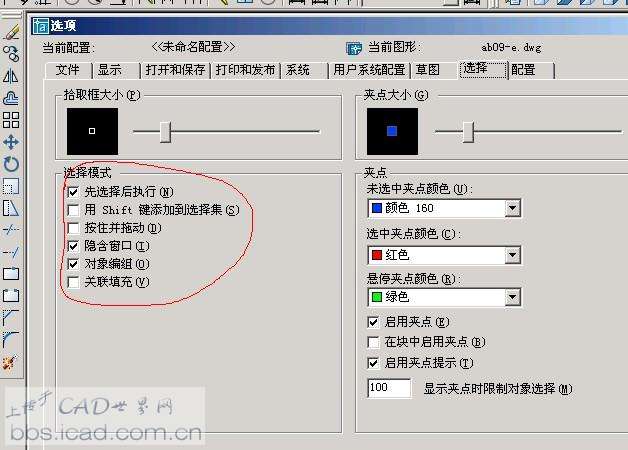4、隐含窗口 此项的含意是如果拾取了不属于对象上的一个点,则CAD认为用户需建立一个选择窗口来选择对象;相反则认为是用户漏选对象。