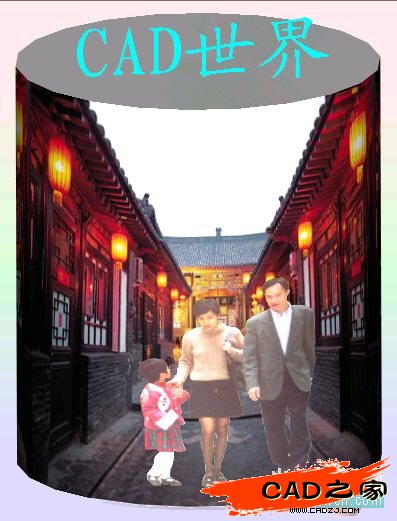 具体方法是:先将主图片附给柱体,并用“贴图”功能调整为满布图像。接着创建一个小的曲面,附给配景图(如人物),与此同时在修该配景图的“透明度”中再附给一个不透明的图片贴上(这里指的是与之配套人物的不透明图像),最后一道渲染成图。这样就只现人物,不现面域阴影,而与柱面贴的主图连接无缝了。请看下图:主图是古式平房图,而人物是图中之贴图。