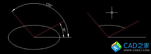 画椭圆弧,其实就是要先画椭圆,再在上面定两点做为弧,零点就是第一个点,当然你也可以认为是第二个点,但是你可以指定起始点角度,如下图:角度线与椭圆的交点亦是後一点.也就是零点.