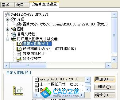 如果图纸尺寸里面的尺寸都太小,可以在打印机/绘图仪的特性里面设置: