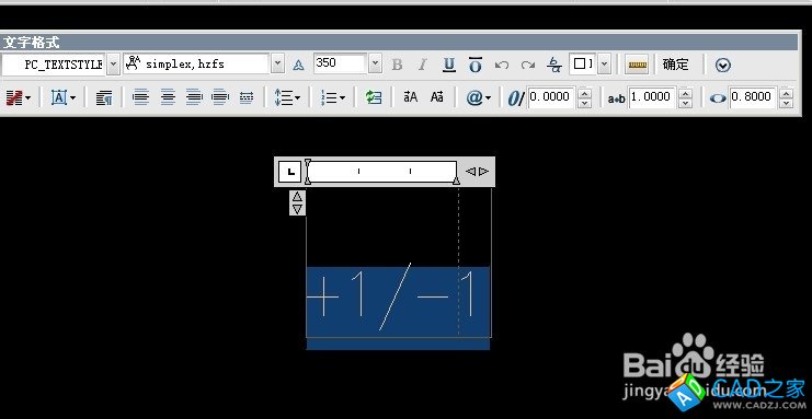插入符 (^):这个是公差堆叠,没有直线分隔。 选中要堆叠的文字,然后在工具栏中单击“堆叠”按钮(a/b)。
