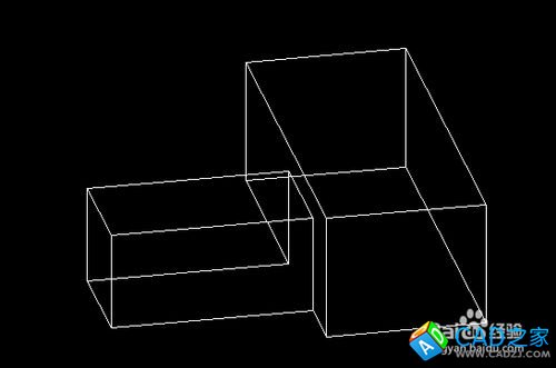 大家可以看到,两个长方体有交集,我们现在对这两个长方体使用并集处理。我们点击并集命令按钮,然后,我们点击两个图形后回车,这样就得到并集后的实体图形。下面是线框模式和真实模式中显示。