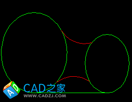 两个椭圆不能用相切相切半径来画红色的圆弧,只能用倒圆角的办法来做