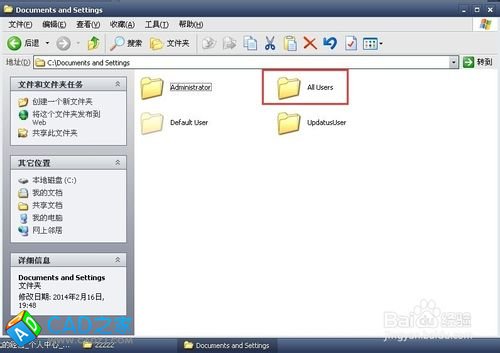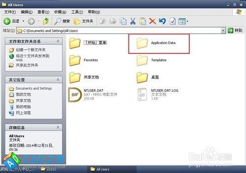 4、打开“Application Data”文件夹。这个文件属于隐藏文件。