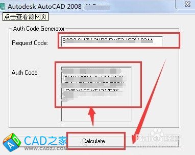 10、然后将下载的注册机2008打开(一定要放在CAD2008的安装文件中)。然后按正常步骤走就好。复制申请号——粘贴到注册机,点击“Calculate",就生成激活码。