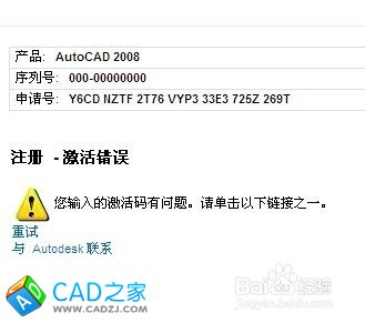 电脑之前系统有问题,重新装了CAD2008 。然后按步骤注册后,总是显示激活错误。原因就在于,之前安装CAD的注册记录还在,所以再次安装时,就不能注册了。之前走了很多弯路。卸了装,装了卸。还是出错,甚至还去系统重装才可以。现在终于知道最简单的方法了,还不损坏电脑。