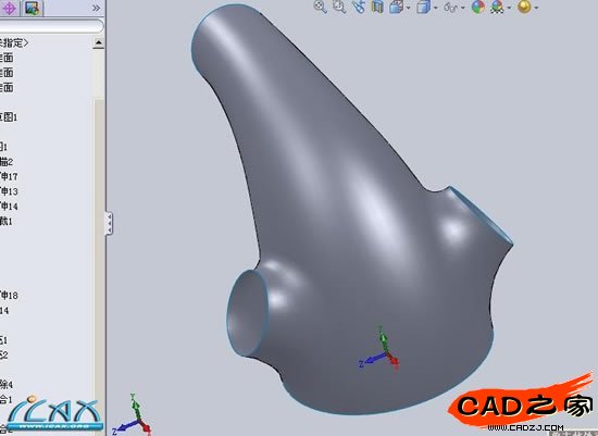 15利用删除实体,和删除面命令,删除多余曲面,效果如图所示,,下面就是曲面缝合