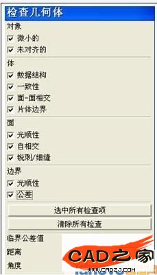 检查几何体对话框各选项的含义如下: